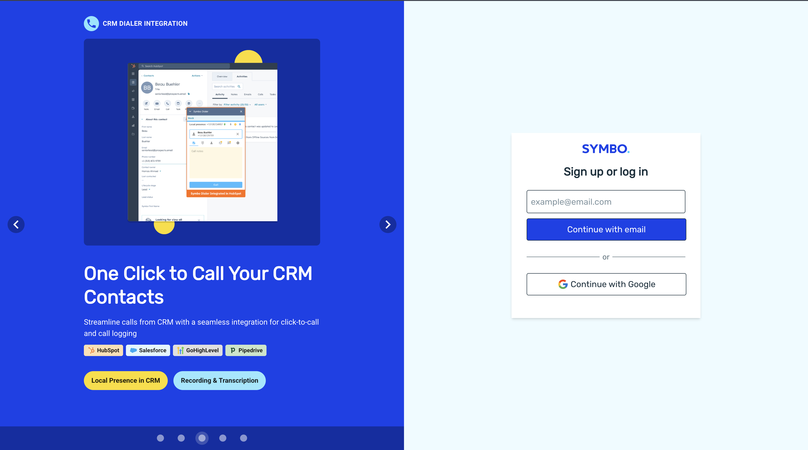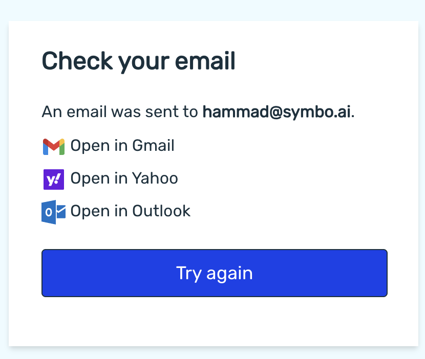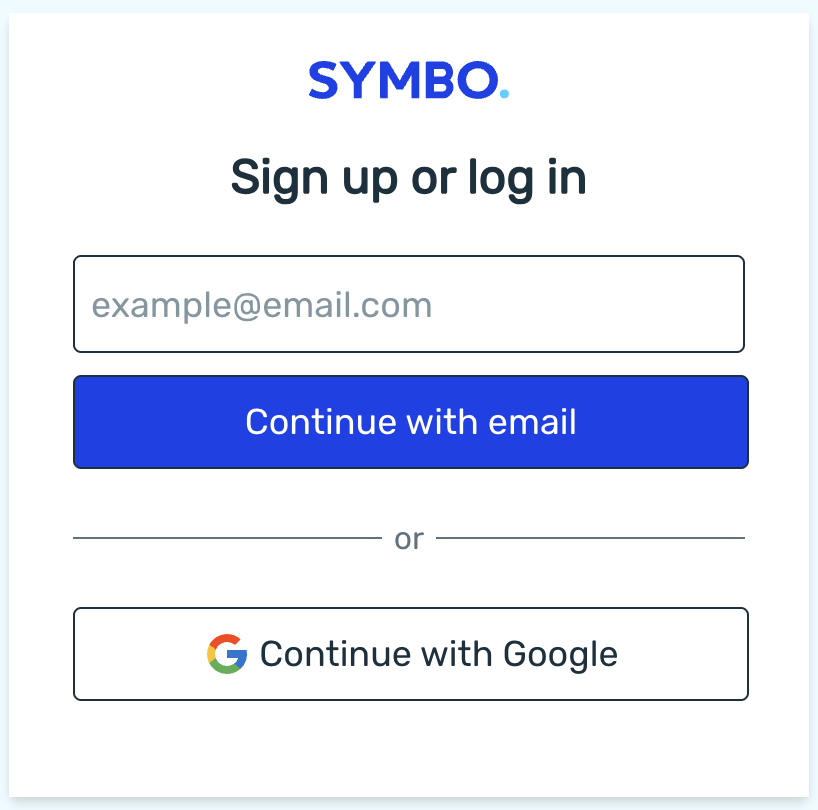 Once authentication is complete, you’ll be redirected to the Symbo Dashboard.