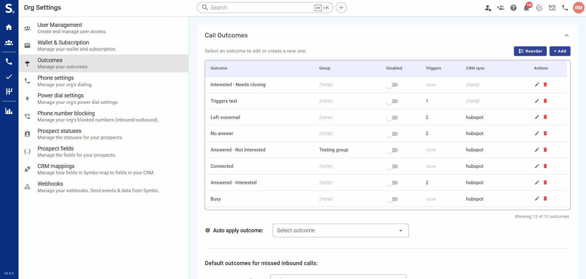 Call Outcomes are the engine behind automation in Symbo. When configured correctly, they allow you to automatically move prospects through your pipeline, control Power Dialer behavior, assign ownership, update your CRM, and trigger advanced workflows after every call. This guide shows you how to design, configure, and optimize Call Outcomes and Triggers so your sales process runs on autopilot.