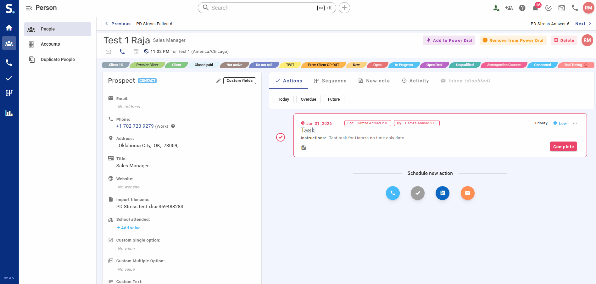 The prospect appears in the selected sequence. (Be careful when selecting prospects already engaged in another sequence)